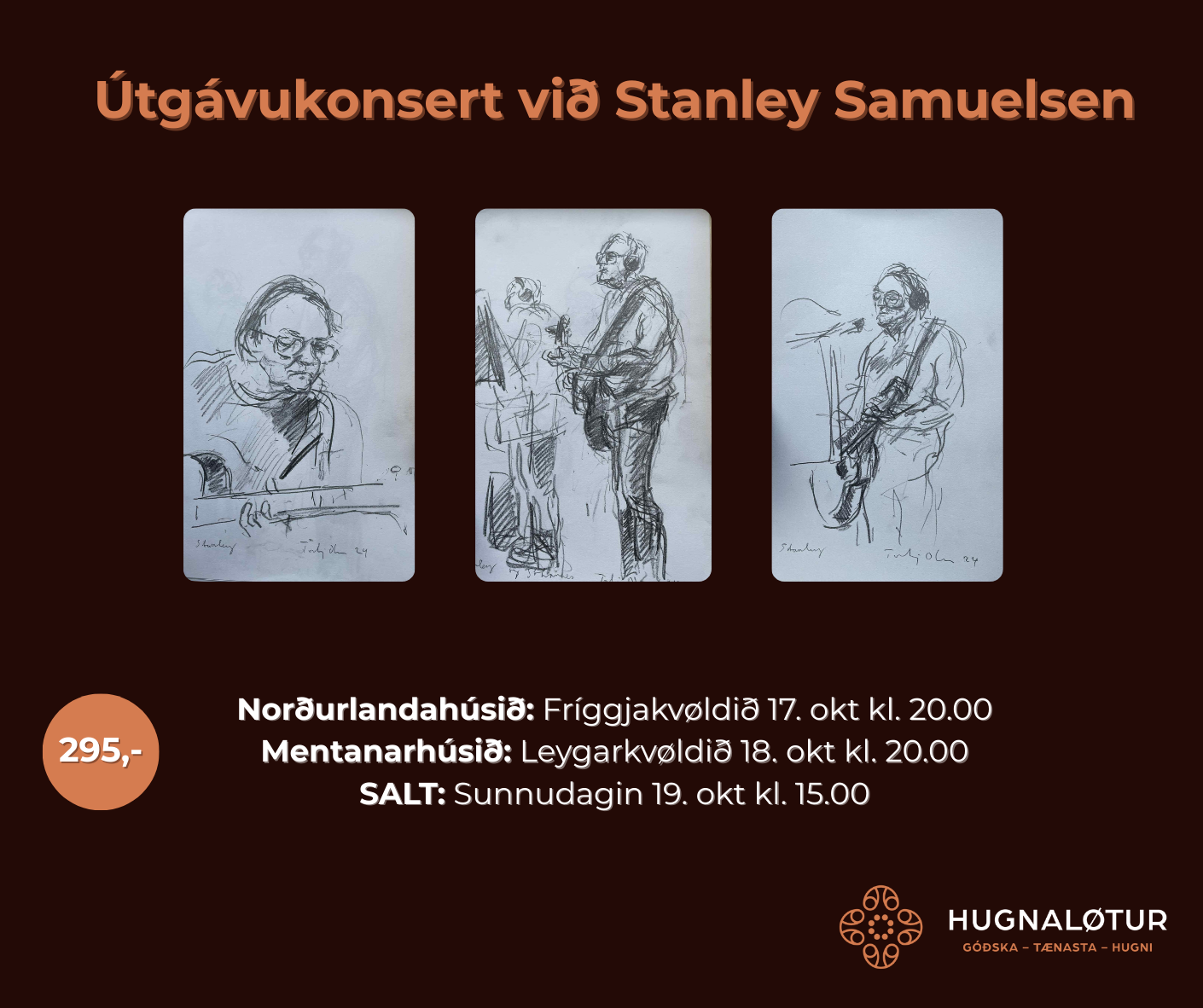 Stanley Samuelsen kemur við nýggjari útgávu og við nýggjari bók. Tí eru útgávukonsertir kring landið frá 17-19. oktobur 2025. Suðuroyingar(red) eru hepnir, tí tann eina konsertin verður í SALT sunnudagin 19. okt. kl. 15.00.